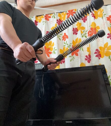 スプリングの反発があるため、振り続けることで前腕・上腕・肩周りが自然と疲れてきます。